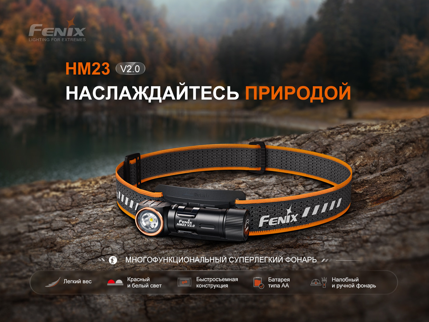 Налобный фонарь Fenix HM23 V2.0 — это надежный многоцелевой фонарь для использования на открытом воздухе. Вы можете с легкостью менять его положение — устанавливать как налобный фонарь или использовать в качестве портативного ручного фонаря. Он идеально подходит для активного отдыха и пробежек, поскольку обладает компактным корпусом и сверхлегким весом в 86,3 г. Такая особенность будет незаменима для тренировок и бега, где учитывается каждый грамм. Также пригодится для кемпинга, трекинга, альпинизма и походов. Может использоваться как налобный фонарь и как ручной портативный фонарик. Прибор работает от стандартной батареи AA или от перезаряжаемого аккумулятора ARB-L14 — вы можете легко выбрать удобный для себя вариант.