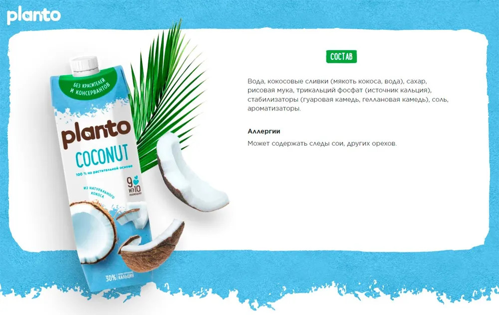 Planto Напиток кокосовый с рисом, обогащенный кальцием