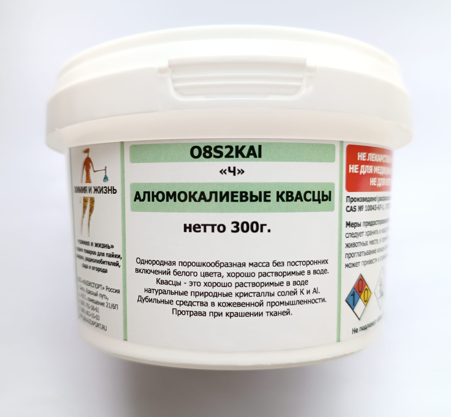 Алюмокалиевые квасцы «Ч»В данный момент этот товар отсутствует в продаже. Возможно, у нас найдется аналогичный или похожий товар здесь. Алюмокалиевые квасцы Ч (чистые) — это двойная соль, состоящая из сульфата алюминия и сульфата калия, кристаллизованная с водой. Однородная порошкообразная масса без посторонних включений белого цвета, хорошо растворимые в воде. Квасцы — это хорошо растворимые в воде натуральные природные кристаллы солей К и Al. Дубильные средства в кожевенной промышленности. Протрава при крашении тканей. |