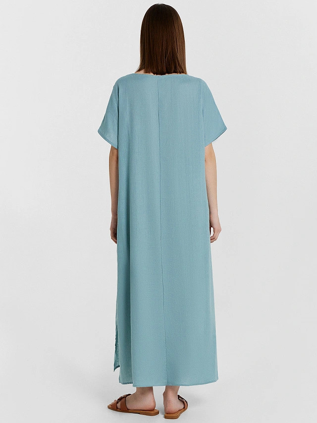 Очень хорошее платье. Ткань очень хорошая, швы ровные хорошо все прошито. Само платье хорошо сидит на фигуре и хорошо скрывает недостатки, так как свободное. Я хочу приобрести несколько штук. Надеюсь что это платье будет всегда в продаже. Так как это классика которая всегда актуальна и можно дома носить и на улицу выйти в нем.