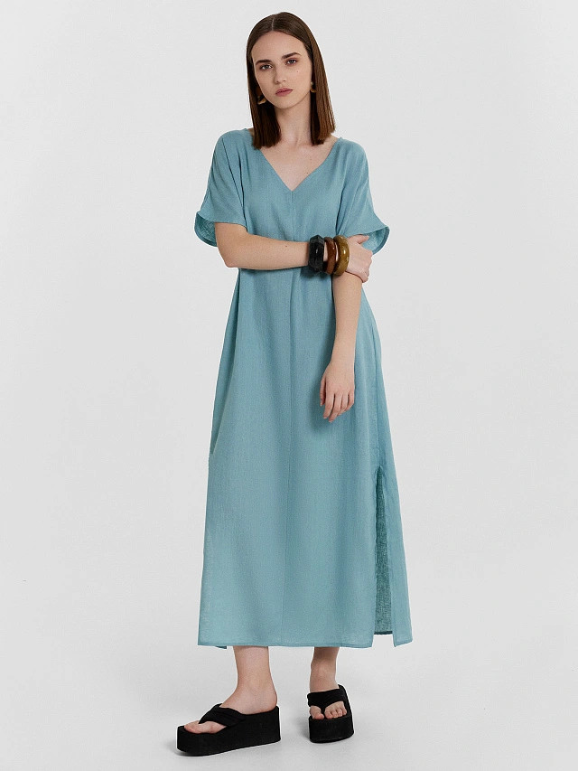 Хорошее льняное платье, ткань тяжелая струится👍🏻
