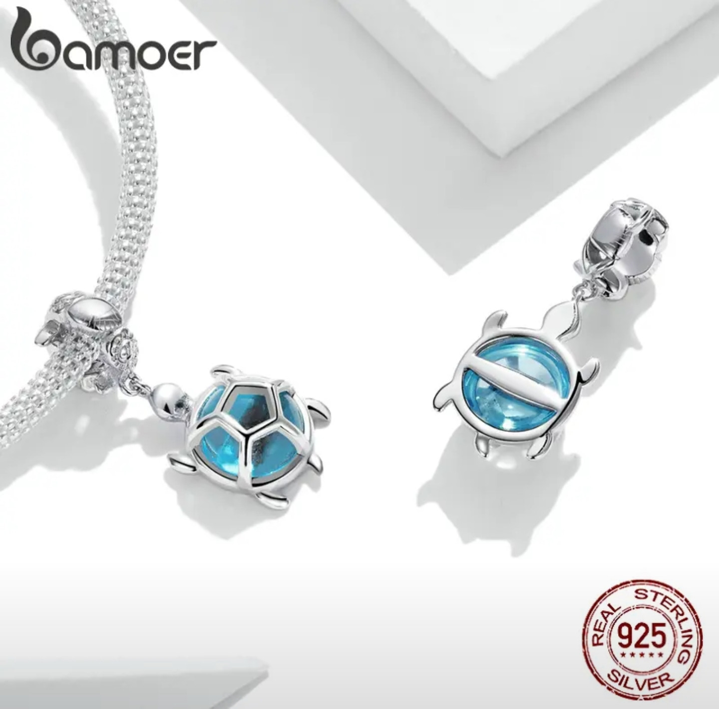 Bamoer Шарм-подвеска из серебра «Голубая черепашка»