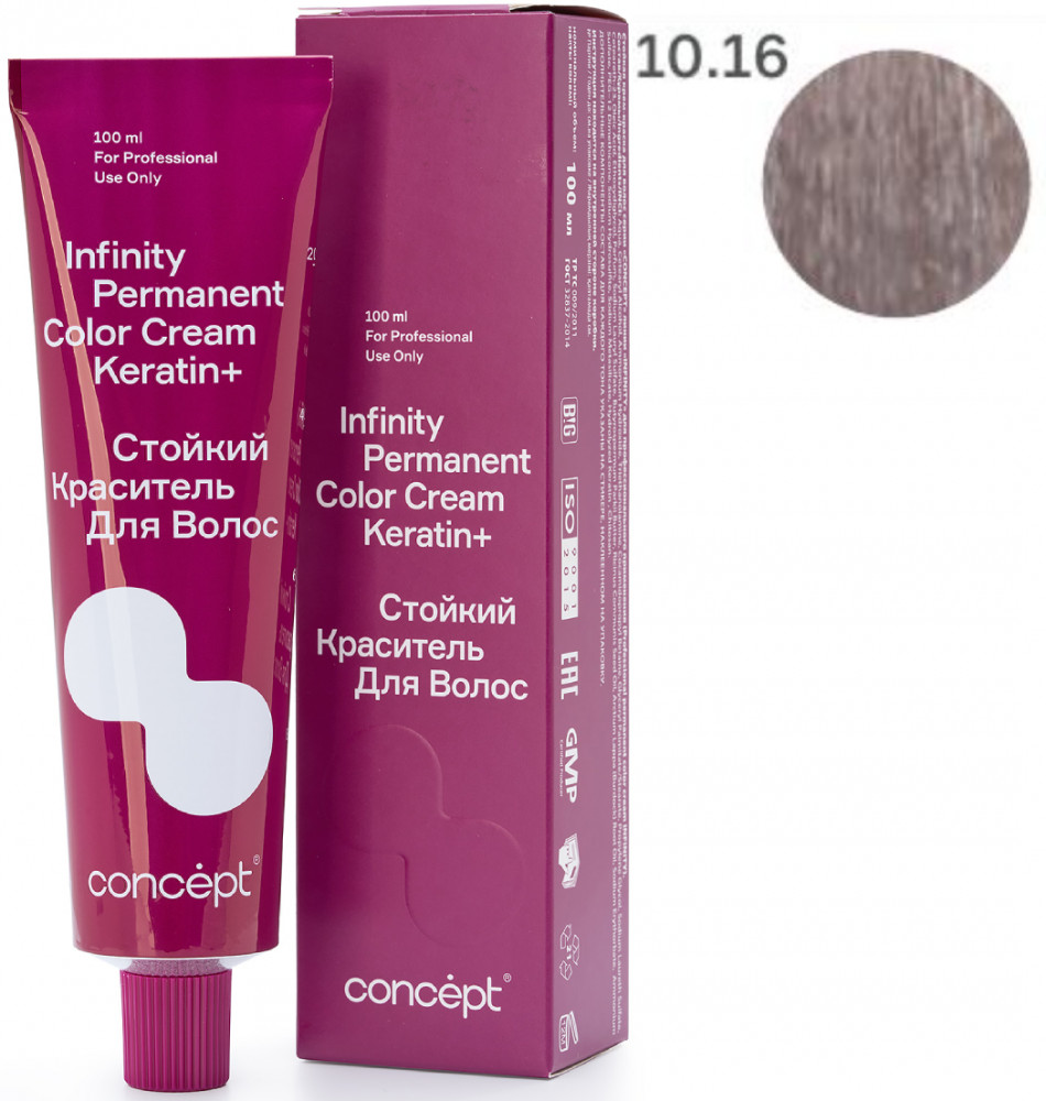 Стойкий краситель для волос Concept Infinity Permanent Color Cream Keratin+ — краситель, вдохновляющий создавать шедевры: 112 невероятно красивых оттенков. 9 новых направлений в палитре. Краситель, восстанавливающий структуру волос: синергия аммиачного компонента и аминоспиртов в формуле позволяют создавать стойкие интенсивные оттенки, уменьшая нагрузку на структуру волоса. Комплекс Keratin Infusion+ Shea butter эффективно застраивает пустоты в кортексе, не только возвращая волосу натуральную структуру, но и надежно фиксируя пигмент, питает и увлажняет волосы, обеспечивая силу и блеск. Это одновременное окрашивание и восстановление, возможное благодаря совместному действию кератина и масла ши, входящим в состав стойкого красителя.
