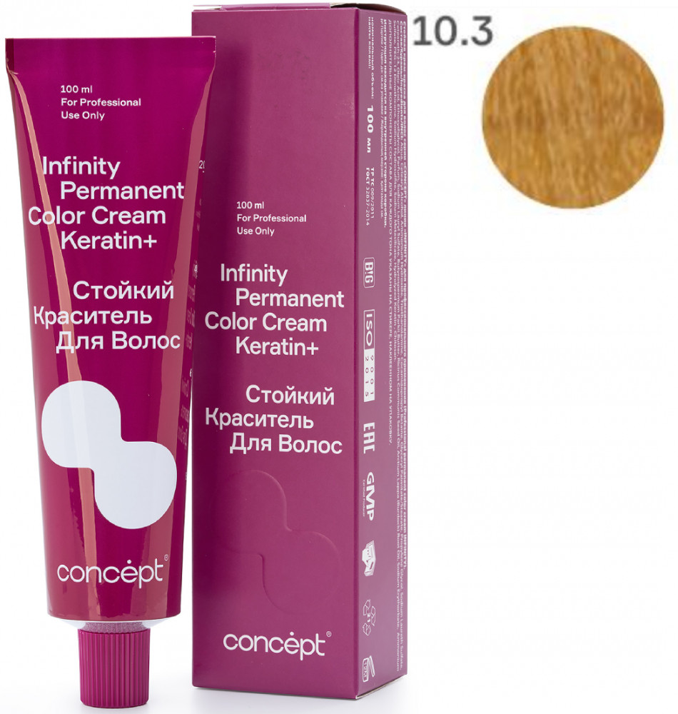 Краситель для волос стойкий «Permanent Color Cream Keratin+», оттенок 10.3 Очень светлый блондин золотистый | Infinity | Concept