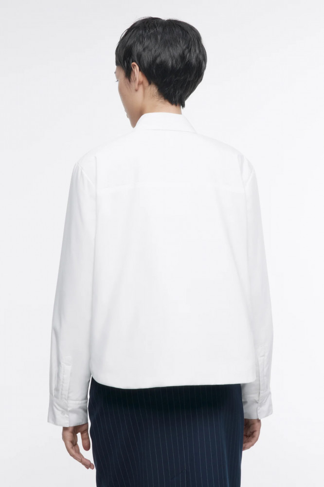 Женская рубашка-жакет с утеплением из новой весенней коллекции выполнена из плотной гладкой ткани с подкладкой. Модель прямого кроя с тонким утеплителем оснащена классическим отложным воротником с застёжкой под горло, длинными свободными рукавами с широкими манжетами на пуговицах и застёжкой на мелкие пуговицы по всей длине. Закруглённый нижний край удлинён сзади и дополнен боковыми вырезами. На груди — накладной карман без застёжки и клапана. Однотонная рубашка в чёрном или белом цвете подойдёт для создания строгих, но удобных образов — в школу, университет, офис или на торжественные мероприятия. Универсальна в сочетании: отлично смотрится с костюмными брюками, прямыми и плиссированными юбками, строгими джинсами или шортами-бермудами. Летом может использоваться как лёгкая верхняя сорочка с футболками, майками или топами. Размер на модели: S. Параметры модели: рост 177 см, бюст 82 см, талия 60 см, бёдра 88 см.