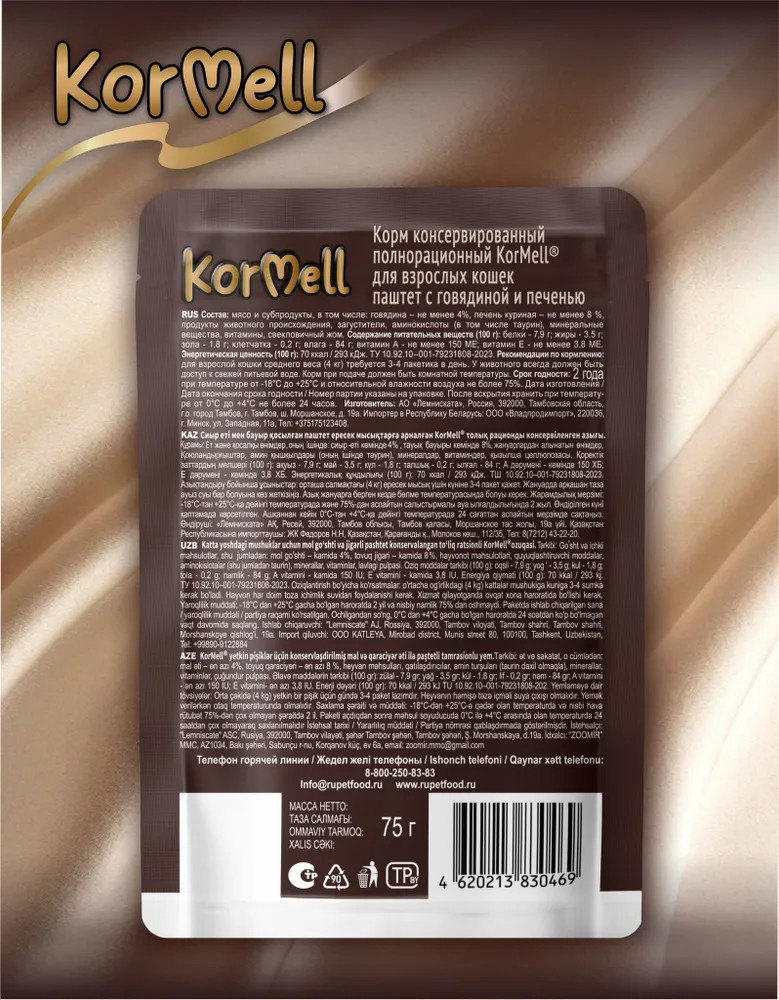 Предлагаем вашему питомцу новый паштет KorMell — изысканное меню для истинных ценителей вкуса, который станет настоящим кулинарным шедевром в его рационе. Паштет для взрослых кошек Говядина с печенью создан для того, чтобы удовлетворить самые изысканные вкусовые предпочтения вашей кошки.
