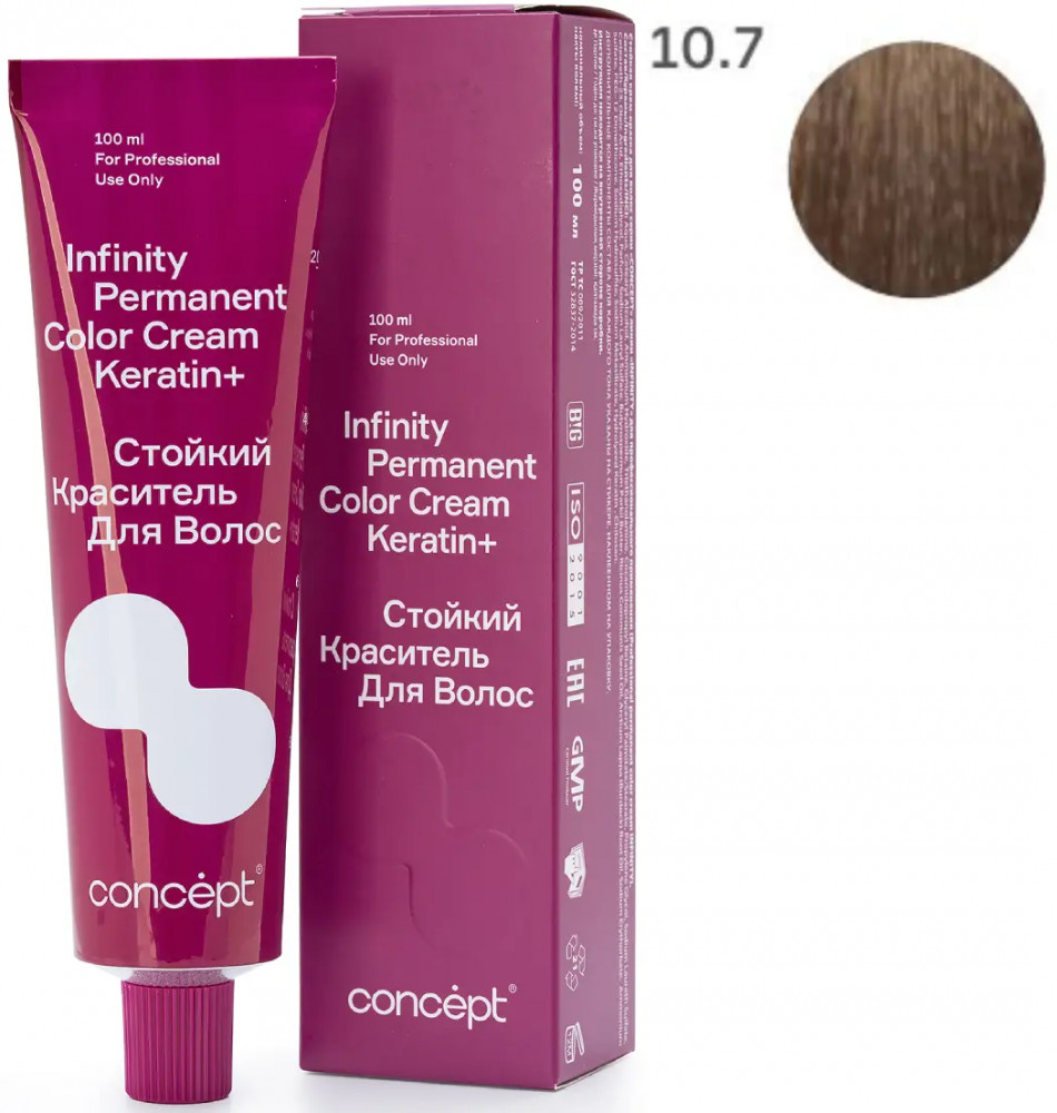 Краситель для волос стойкий «Permanent Color Cream Keratin+», оттенок 10.7 Очень светлый блондин коричневый | Infinity | Concept
