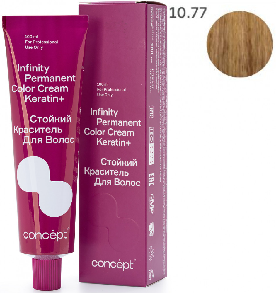 Краситель для волос стойкий «Permanent Color Cream Keratin+», оттенок 10.77 Очень светлый блондин коричневый интенсивный | Infinity | Concept