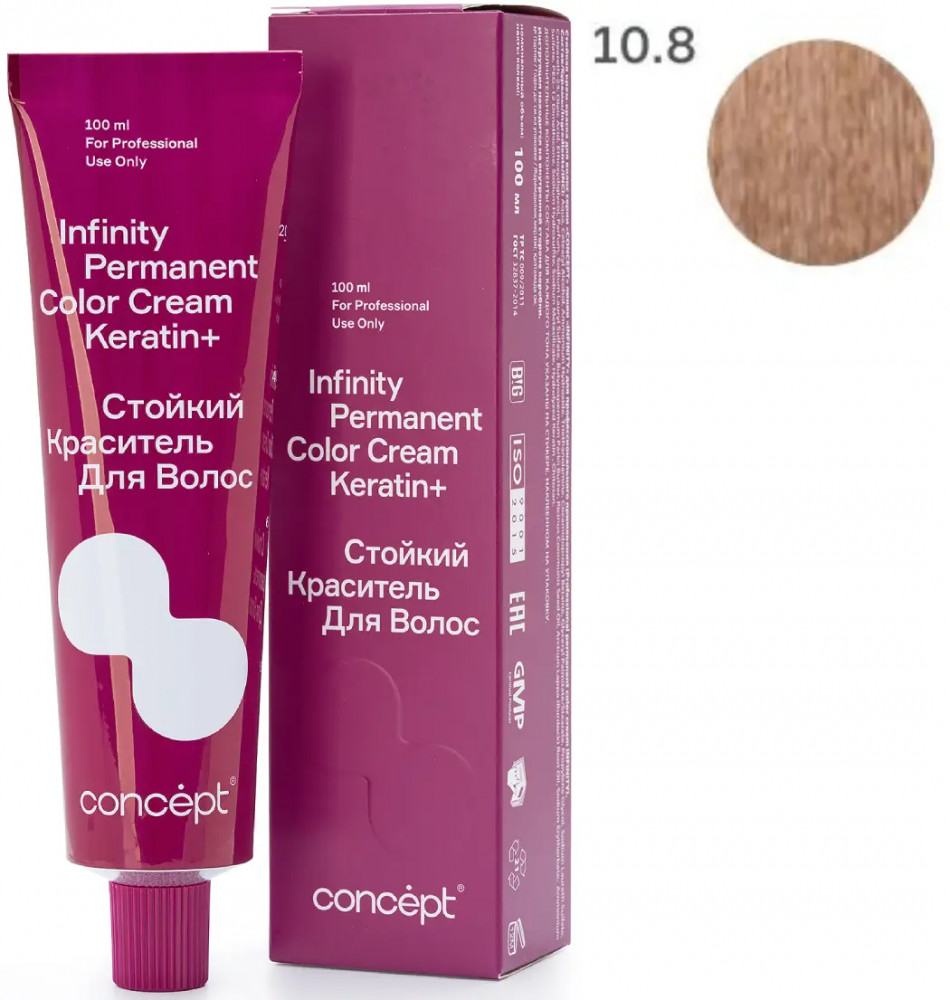 Стойкий краситель для волос Concept Infinity Permanent Color Cream Keratin+ — краситель, вдохновляющий создавать шедевры: 112 невероятно красивых оттенков. 9 новых направлений в палитре. Краситель, восстанавливающий структуру волос: синергия аммиачного компонента и аминоспиртов в формуле позволяют создавать стойкие интенсивные оттенки, уменьшая нагрузку на структуру волоса. Комплекс Keratin Infusion+ Shea butter эффективно застраивает пустоты в кортексе, не только возвращая волосу натуральную структуру, но и надежно фиксируя пигмент, питает и увлажняет волосы, обеспечивая силу и блеск. Это одновременное окрашивание и восстановление, возможное благодаря совместному действию кератина и масла ши, входящим в состав стойкого красителя.