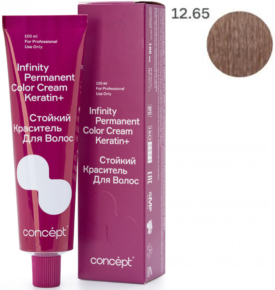 Стойкий краситель для волос Concept Infinity Permanent Color Cream Keratin+ — краситель, вдохновляющий создавать шедевры: 112 невероятно красивых оттенков. 9 новых направлений в палитре. Краситель, восстанавливающий структуру волос: синергия аммиачного компонента и аминоспиртов в формуле позволяют создавать стойкие интенсивные оттенки, уменьшая нагрузку на структуру волоса. Комплекс Keratin Infusion+ Shea butter эффективно застраивает пустоты в кортексе, не только возвращая волосу натуральную структуру, но и надежно фиксируя пигмент, питает и увлажняет волосы, обеспечивая силу и блеск. Это одновременное окрашивание и восстановление, возможное благодаря совместному действию кератина и масла ши, входящим в состав стойкого красителя.