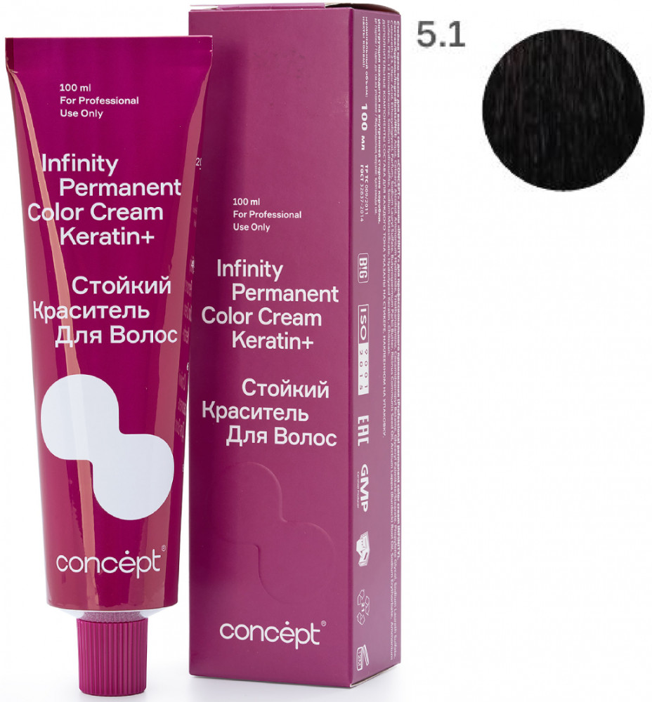 Краситель для волос стойкий «Permanent Color Cream Keratin+», оттенок 5.1 Темно-русый пепельный | Infinity | Concept