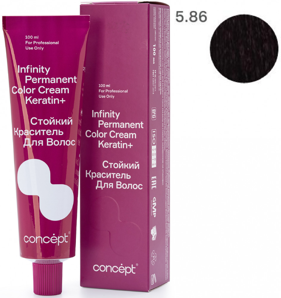 Краситель для волос стойкий «Permanent Color Cream Keratin+», оттенок 5.86 Темно-русый жемчужно-фиолетовый | Infinity | Concept