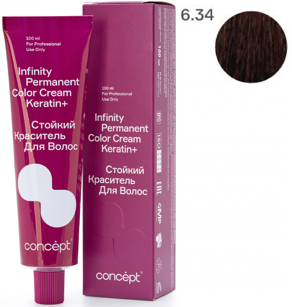 Краситель для волос стойкий «Permanent Color Cream Keratin+», оттенок 6.34 Русый золотисто-медный | Infinity | Concept