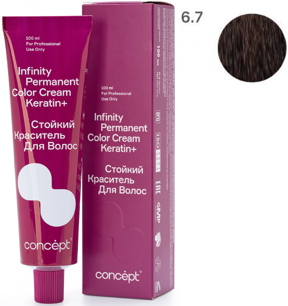 Краситель для волос стойкий «Permanent Color Cream Keratin+», оттенок 6.7 Русый коричневый | Infinity | Concept