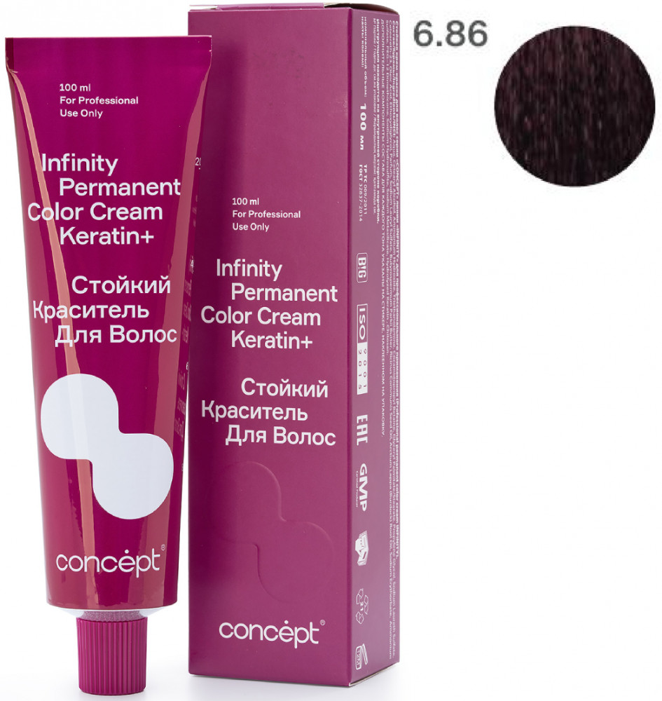 Краситель для волос стойкий «Permanent Color Cream Keratin+», оттенок 6.86 Русый жемчужно-фиолетовый | Infinity | Concept
