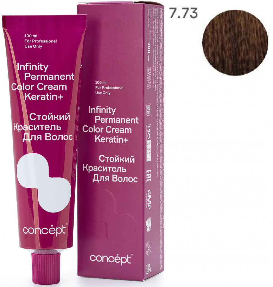 Краситель для волос стойкий «Permanent Color Cream Keratin+», оттенок 7.73 Светло-русый коричнево-золотистый | Infinity | Concept