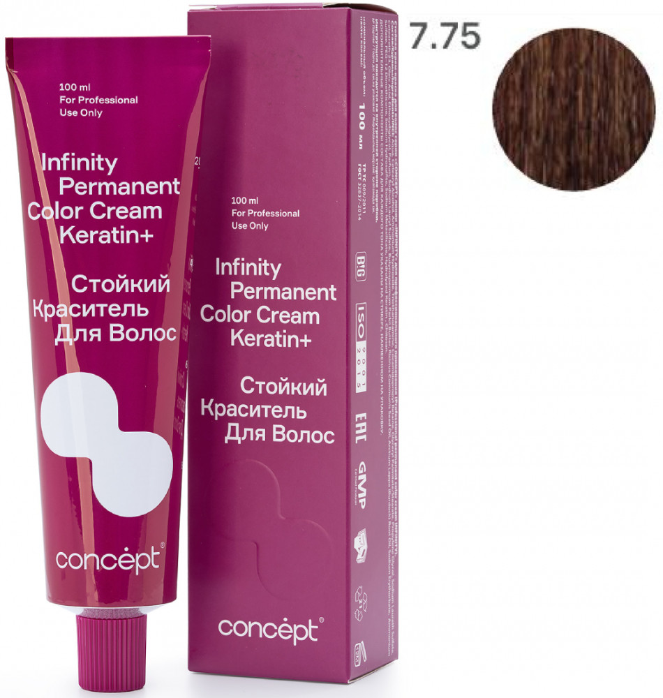 Краситель для волос стойкий «Permanent Color Cream Keratin+», оттенок 7.75 Светло-русый коричнево-красный | Infinity | Concept