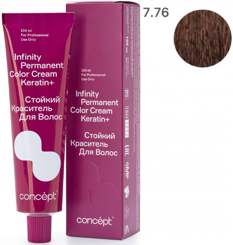 Краситель для волос стойкий «Permanent Color Cream Keratin+», оттенок 7.76 Светло-русый коричнево-фиолетовый | Infinity | Concept