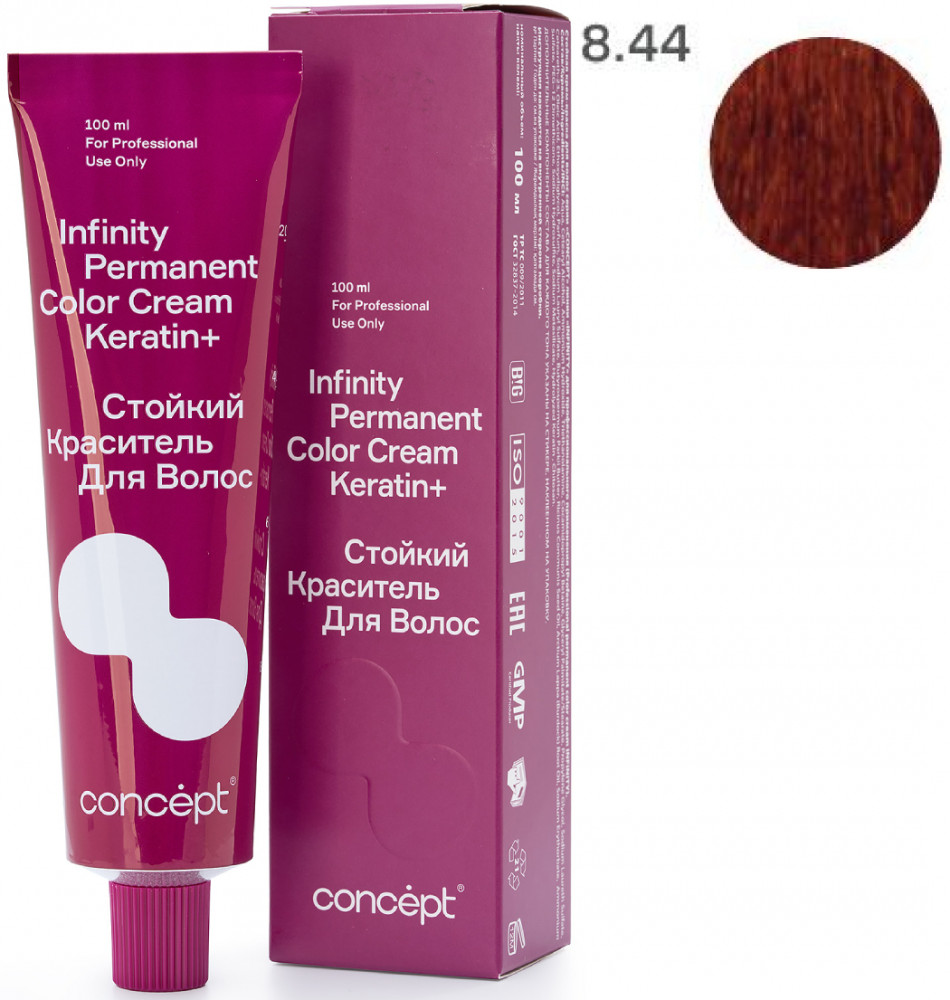 Краситель для волос стойкий «Permanent Color Cream Keratin+», оттенок 8.44 Блондин медный интенсивный | Infinity | Concept