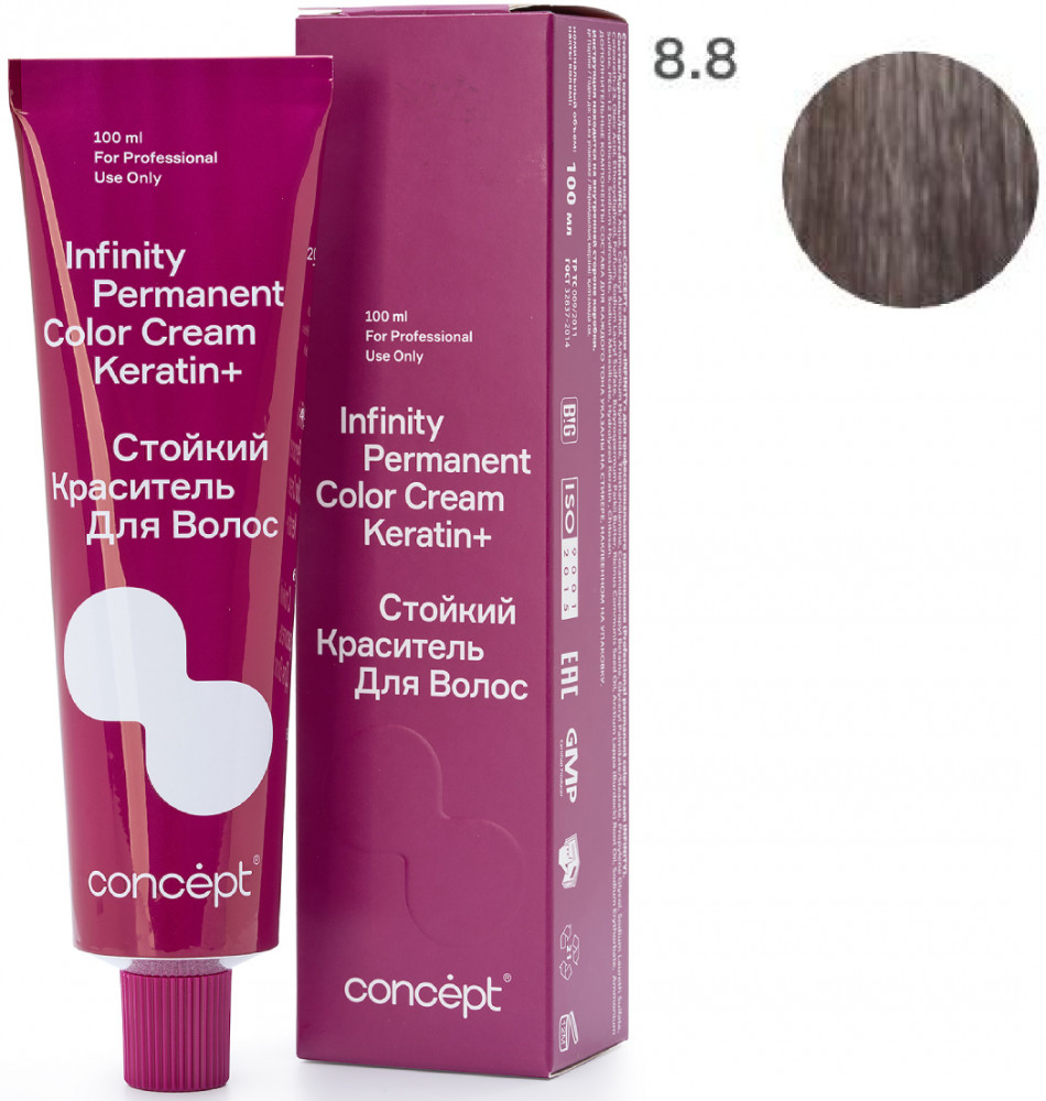 Краситель для волос стойкий «Permanent Color Cream Keratin+», оттенок 8.8 Блондин жемчужный | Infinity | Concept