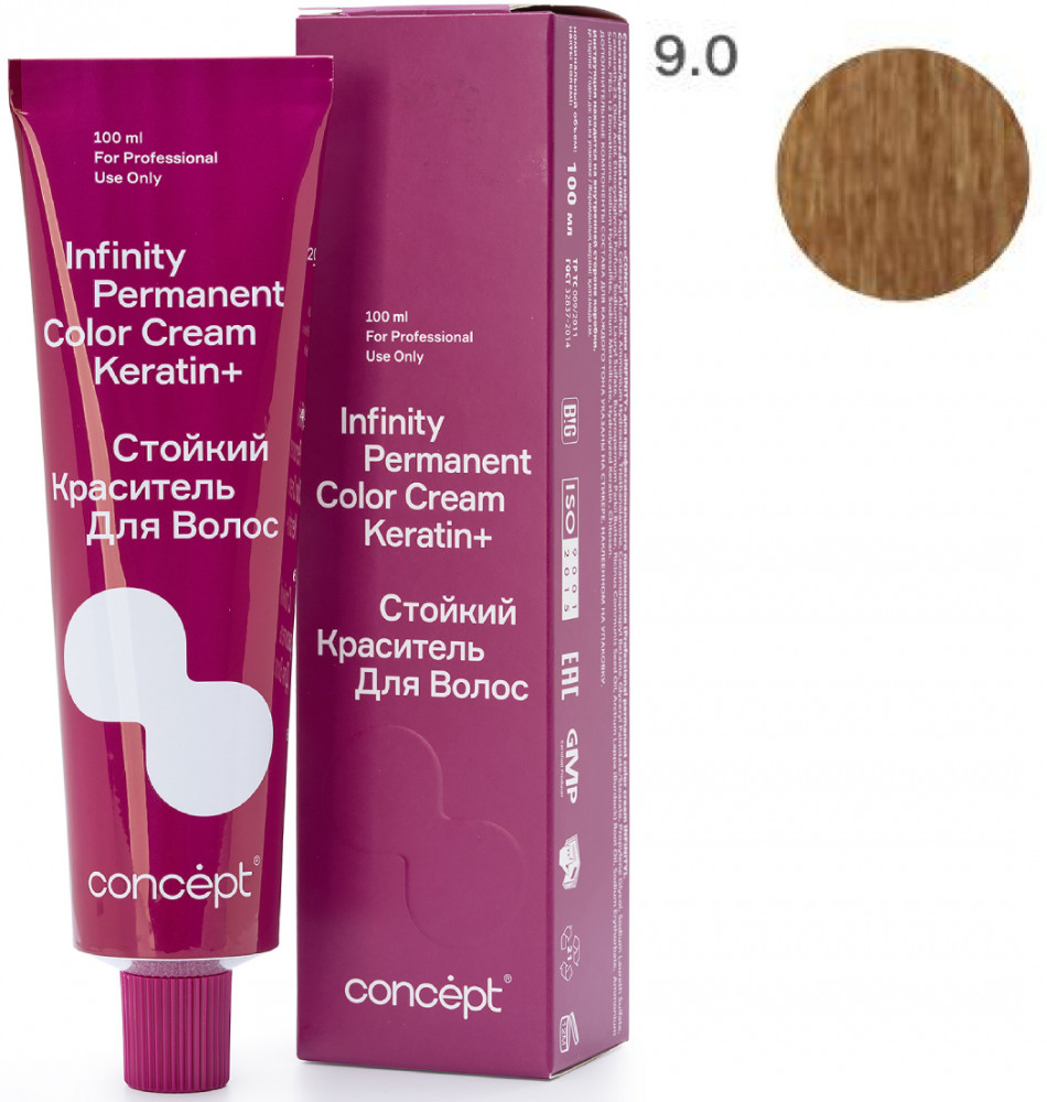 Краситель для волос стойкий «Permanent Color Cream Keratin+», оттенок 9.0 Светлый блондин | Infinity | Concept