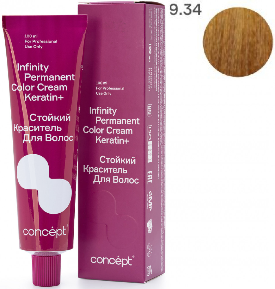 Краситель для волос стойкий «Permanent Color Cream Keratin+», оттенок 9.34 Светлый блондин золотисто-медный | Infinity | Concept