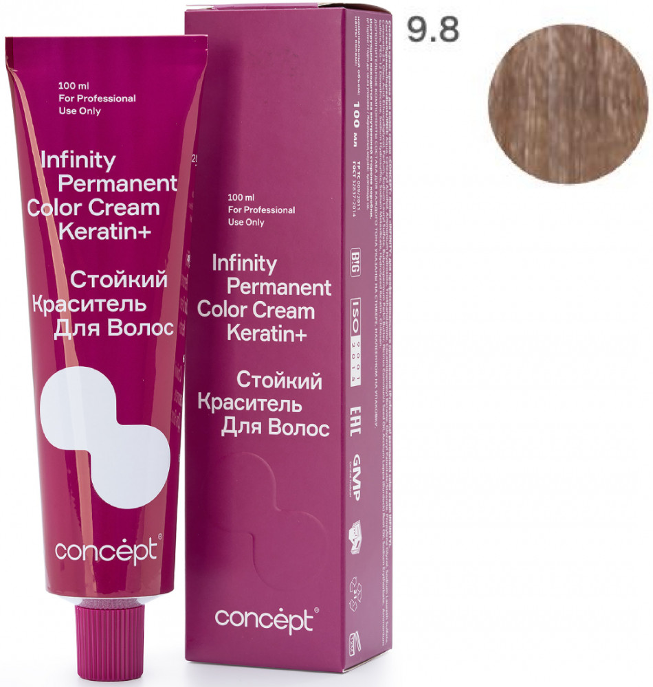 Краситель для волос стойкий «Permanent Color Cream Keratin+», оттенок 9.8 Светлый блондин жемчужный | Infinity | Concept
