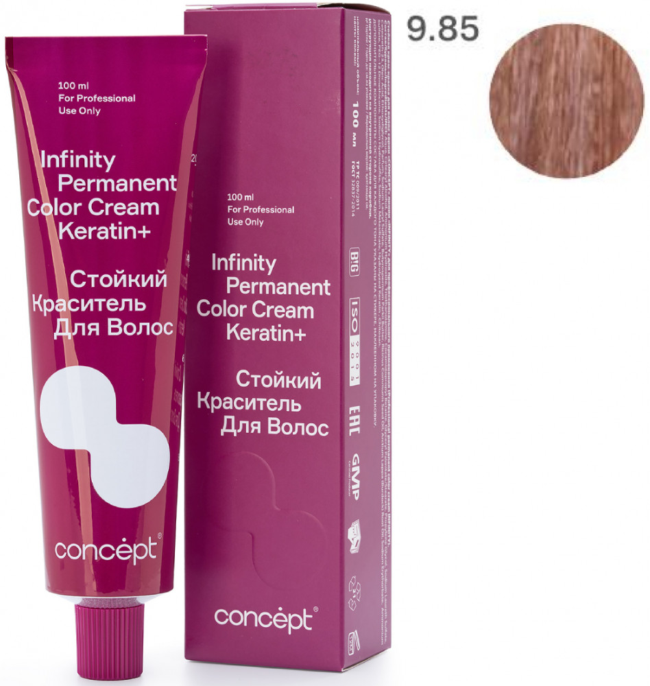 Краситель для волос стойкий «Permanent Color Cream Keratin+», оттенок 9.85 Светлый блондин жемчужно-красный | Infinity | Concept
