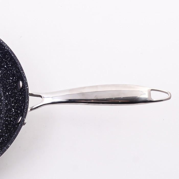 Сковорода — ваш верный спутник на кухне! Благодаря антипригарному покрытию вы сможете готовить любимые блюда легко и быстро: от тонких блинчиков до сочных стейков. Просторная поверхность и высокие бортики позволят экспериментировать с разными способами приготовления: от жарки до тушения. Эргономичная ручка с покрытием Soft Touch обеспечивает максимальный комфорт при использовании и хранении. Алюминий, из которого изготовлена модель, равномерно распределяет тепло, обеспечивая идеальные условия для приготовления пищи. Равномерное распределение тепла и защита от пригорания гарантируют неповторимый вкус и аппетитный внешний вид каждого кусочка. Она отлично подходит для приготовления разнообразной пищи: яичница, блинчики, сырники, а также для жарки стейков, котлеток, картофеля, мяска, рыбки и тушения овощей. Сковорода для индукционной плиты проста в уходе и компактна. После использования её достаточно протереть влажной губкой, а при необходимости можно помыть в посудомоечной машине. Эта уникальная сковорода станет незаменимым помощником на кухне и позволит вам создавать кулинарные шедевры.