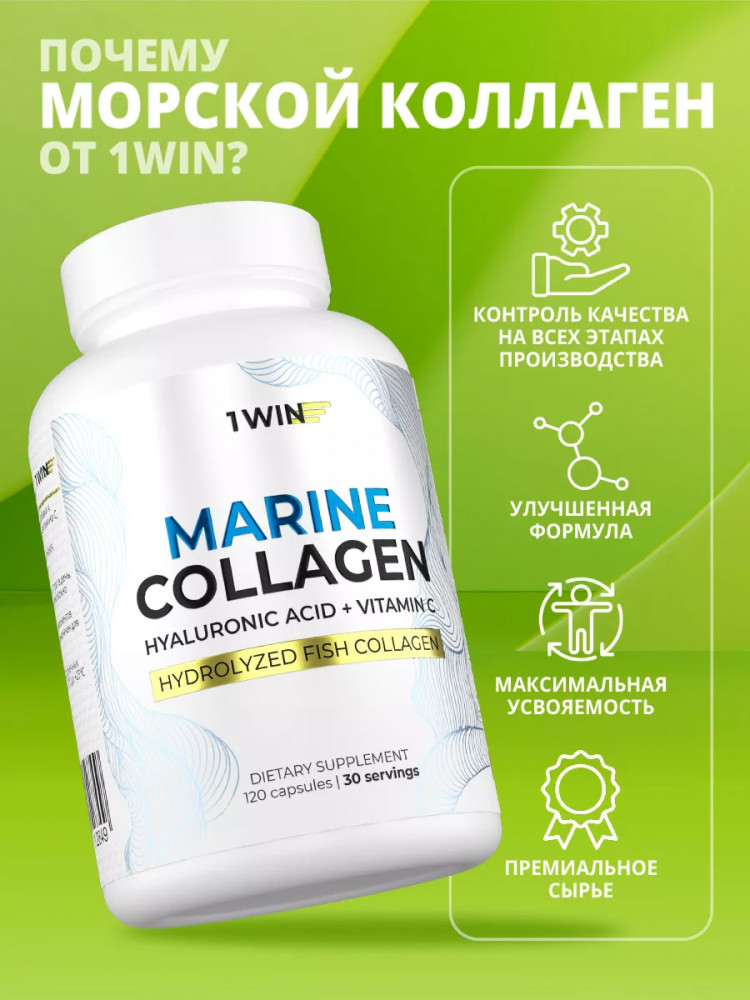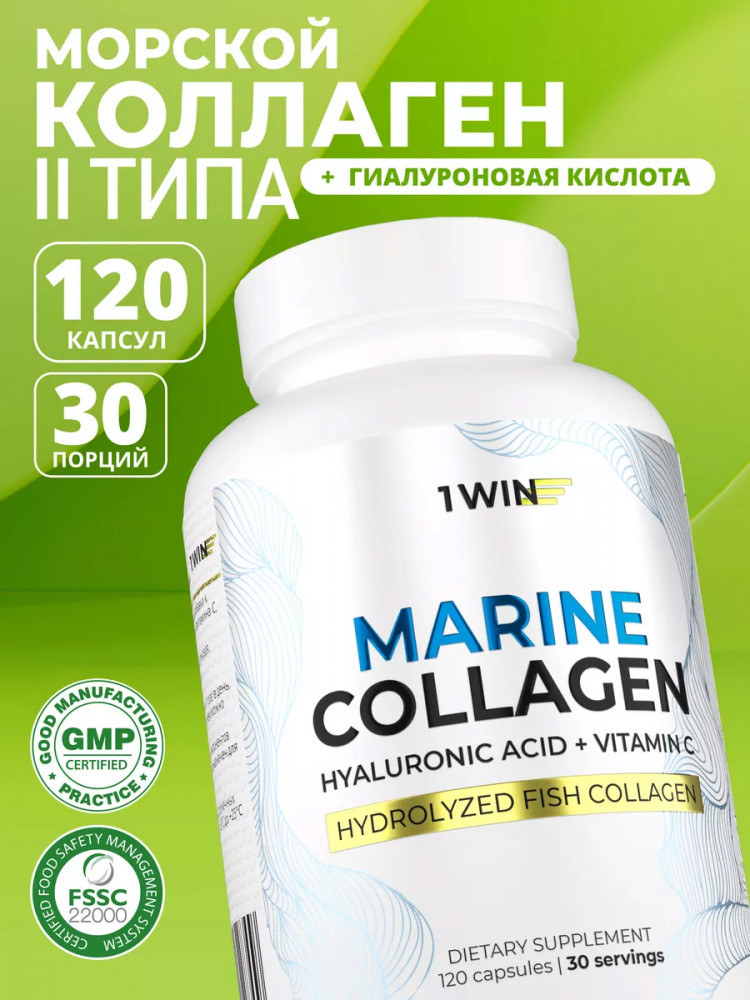 1WIN БАД «Коллаген морской в капсулах, гиалуроновая кислота, витамин С»-20% +118