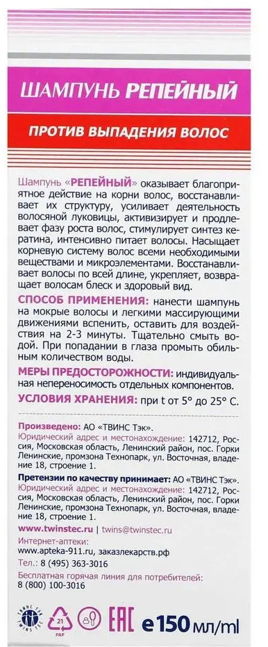 Твинс Тэк Шампунь против выпадения волос «Репейный»