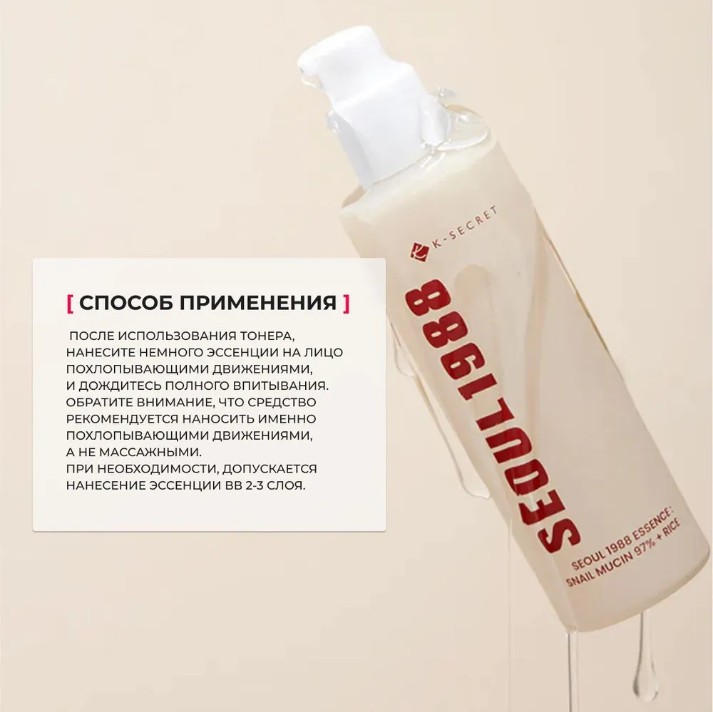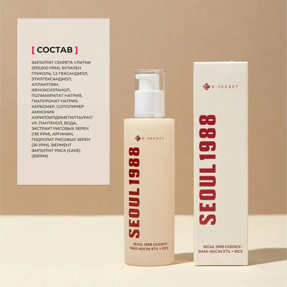 K-Secret Эссенция для лица с фильтратом улитки и рисовым экстрактом восстанавливающая «Snail mucin 97% + rice»