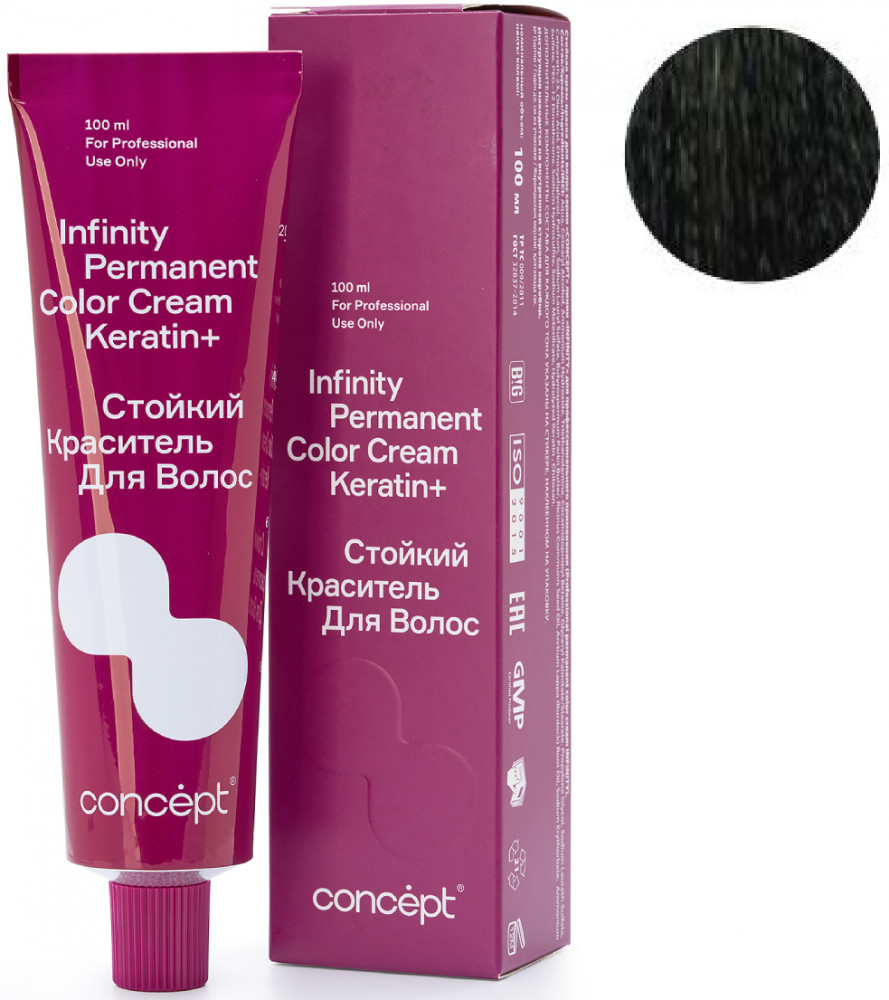Стойкий краситель для волос Concept Infinity Permanent Color Cream Keratin+ — краситель, вдохновляющий создавать шедевры: 112 невероятно красивых оттенков. 9 новых направлений в палитре. Краситель, восстанавливающий структуру волос: синергия аммиачного компонента и аминоспиртов в формуле позволяют создавать стойкие интенсивные оттенки, уменьшая нагрузку на структуру волоса. Комплекс Keratin Infusion+ Shea butter эффективно застраивает пустоты в кортексе, не только возвращая волосу натуральную структуру, но и надежно фиксируя пигмент, питает и увлажняет волосы, обеспечивая силу и блеск. Это одновременное окрашивание и восстановление, возможное благодаря совместному действию кератина и масла ши, входящим в состав стойкого красителя.