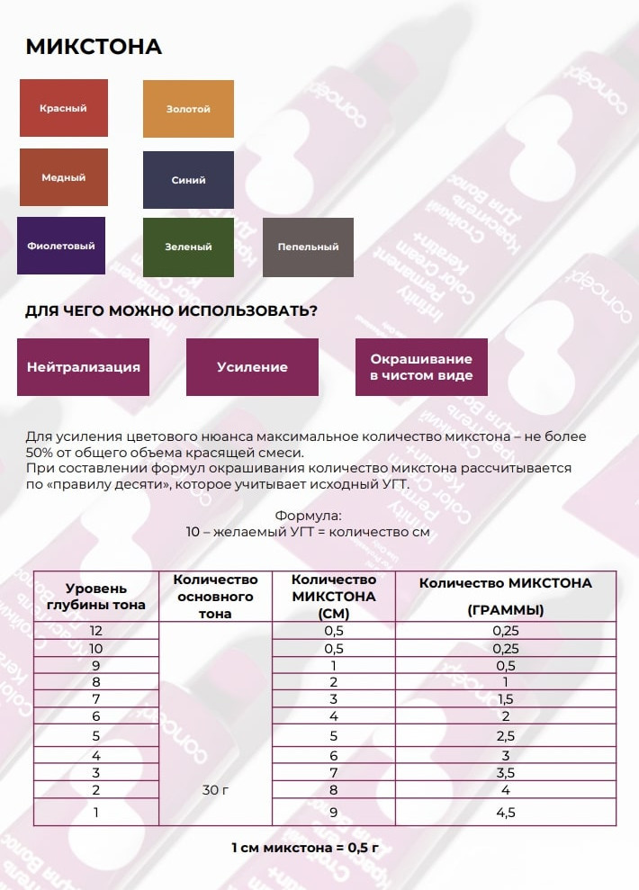 1. Для окрашивания «тон в тон» применяется 3% или 6% окислитель. Пропорция смешивания 1:1,5. Время выдержки 30-40 минут.