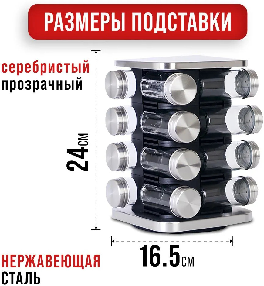 Устали от беспорядочного хранения специй и приправ? Тогда этот подарочный набор для кухни — идеальное решение! Крутящаяся подставка для специй и баночки добавят стиля и функциональности вашей кухне. Органайзер изготовлен из прочной нержавеющей стали, что гарантирует долгий срок службы. Крышки банок также выполнены из нержавеющей стали, обеспечивая надёжную защиту ваших специй от влаги и пыли. Главная особенность набора — вращающаяся на 360 градусов подставка, которая позволяет легко и быстро найти нужную специю, просто повернув органайзер. Теперь вам не придётся тратить время на поиски нужной специи среди беспорядка! Для приправ органайзер — незаменимое приспособление для кухни.