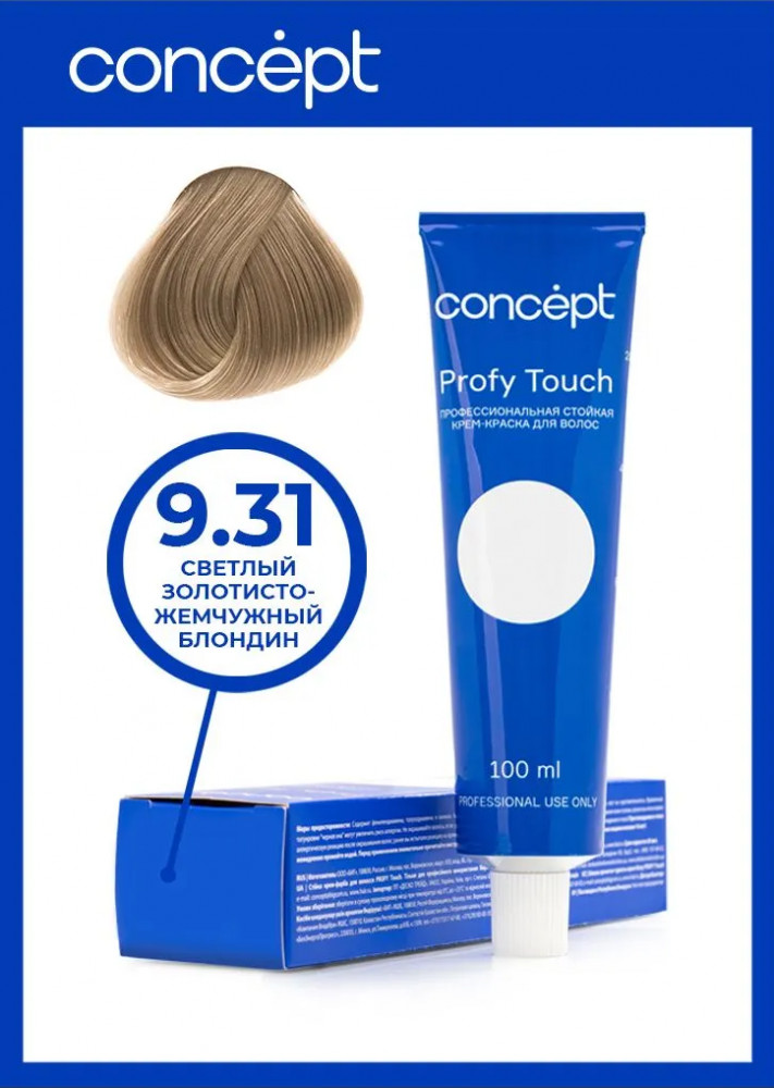 Concept Крем-краска для волос профессиональная, оттенок 9.31 Светлый золотисто-жемчужный блондин
