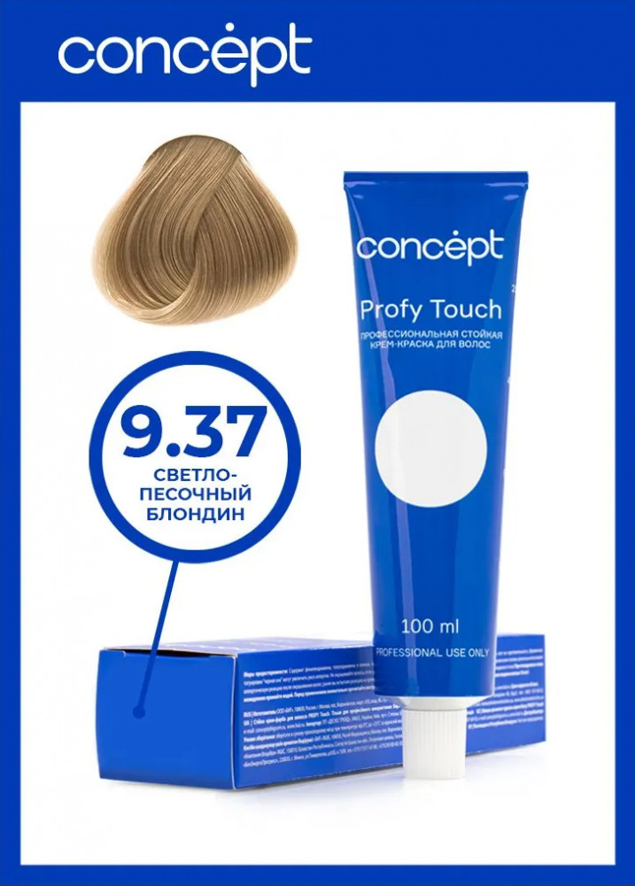 Concept Крем-краска для волос профессиональная, оттенок 9.37 Светло-песочный блондин