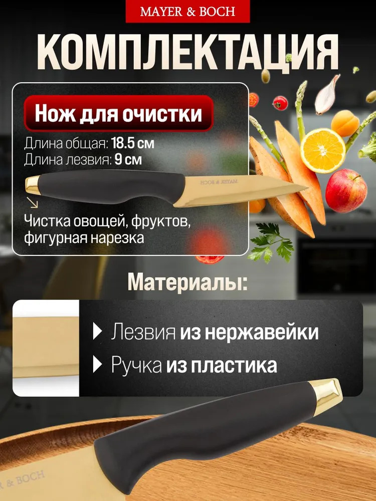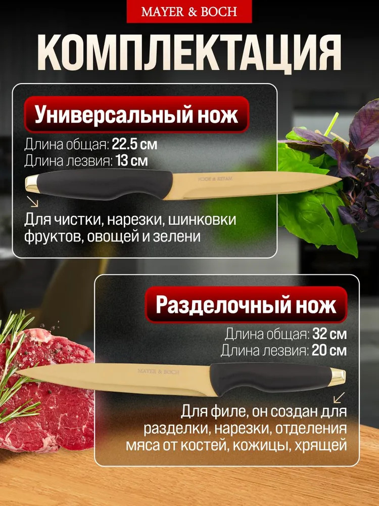 💳 Оплатить за товар можно при получении 🇰🇿 Есть бесплатная доставка по Казахстану от 1 дня 🎁 Копите бонусы с каждой покупки Представляем вам изысканный набор кухонных ножей, созданный для настоящих гурманов и любителей кулинарного искусства! Этот набор включает в себя пять ножей золотистого оттенка, которые не только радуют глаз своим благородным блеском, но и отличаются безупречной функциональностью. Каждая ручка ножей выполнена из качественного черного материала, обеспечивающего комфортный и надежный хват. Подарите своему пространству стиль и практичность благодаря прозрачной пластиковой подставке, которая не только красиво оформляет набор, но и обеспечивает удобное хранение ножей. Прозрачность материала позволяет легко найти нужный инструмент, а также делает ваш кухонный стол визуально более просторным и современным. Эти ножи станут незаменимым помощником в повседневной кухне, позволяя выполнять самые разнообразные задачи от нарезки овощей до шинковки мяса. Элегантный дизайн и высококачественные материалы гарантируют долгие годы использования и наслаждение процессом приготовления любимых блюд. |