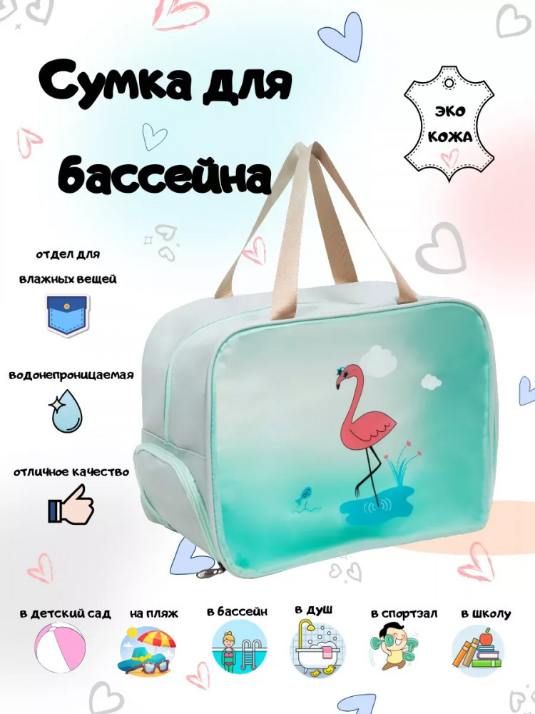 Крутой органайзер, выполненный из водонепроницаемого материала и оснащенный удобными крепкими ручками, станет отличным выбором ручной клади для путешествий на самолете и подойдет для различных дальних поездок. Многофункциональная сумка для бассейна детская имеет модный и молодежный дизайн. Она понравится детям и подросткам — школьникам и студентам. Универсальное изделие, выполненное из прочного непромокаемого материала премиум-качества и водостойкого кожзама, прекрасно подходит для пляжного отдыха и дорожных условий. Красивая детская или женская дизайнерская модель в кэжуал — стиле актуальна для различных спортивных тренировок.