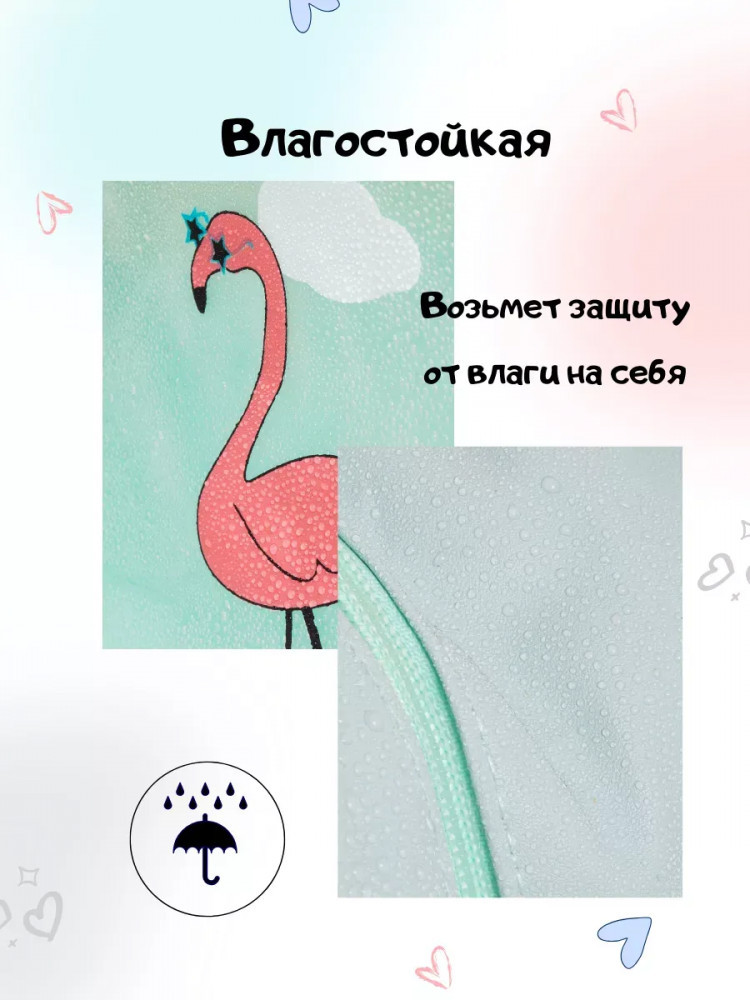 Стильная косметичка для бассейна, бани, спорта — это идеальный подарок как девочке-подростку, так и взрослой женщине. Косметичка универсальная прямоугольной формы выполнена из прозрачного полиуретана и мягкой экокожи классического черного цвета, украшена милым и ярким принтом и оснащена застежкой — молнией. Изделие имеет оптимальные размеры — высота косметички составляет 21 см, ширина — 30 см, а глубина 10 см. Внутри есть карман для сменной обуви, тапочек и большое отделение для косметики, влажных вещей и одежды. Аксессуар из влагозащитного матового материала идеально подойдет для ходьбы в бассейн и летнего отдыха на пляже, а также занятий фитнесом в спортзале и физкультуры в школе.
