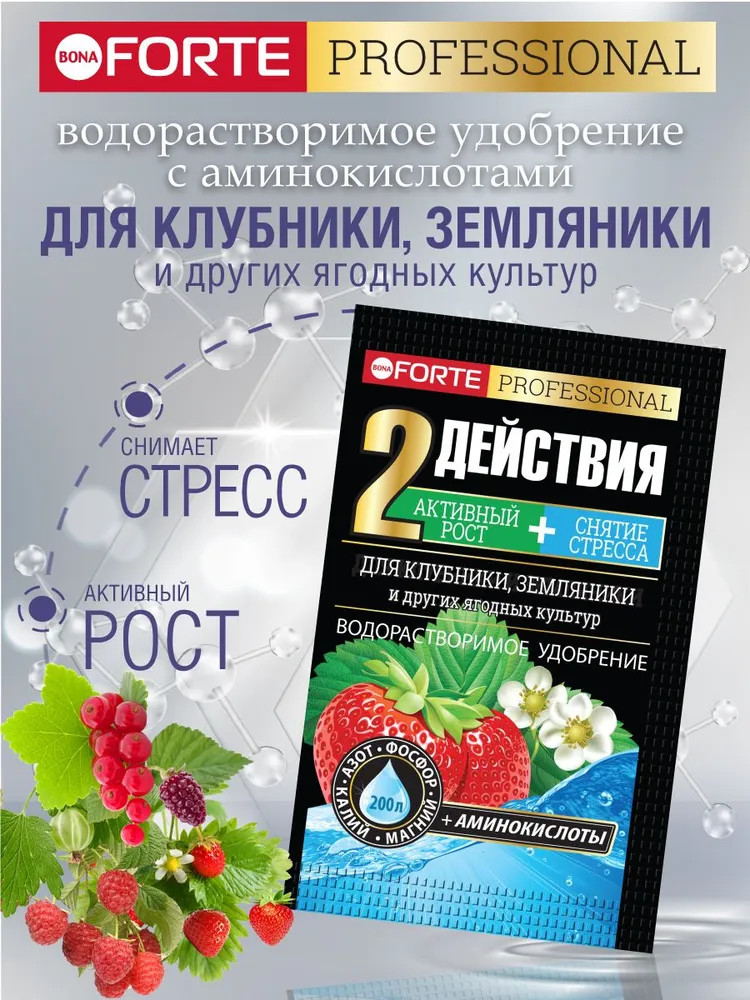 Bona Forte Удобрение водорастворимое для клубники, земляники с аминокислотами-30% +7