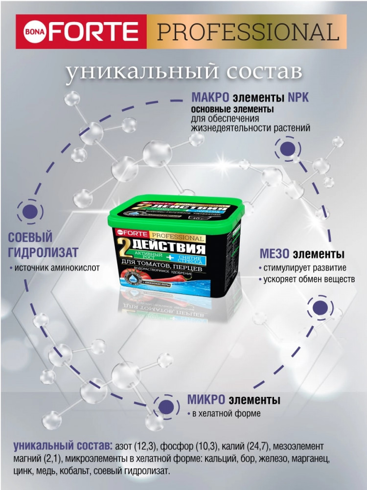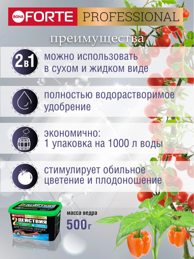 Bona Forte Удобрение водорастворимое для томатов и перцев с аминокислотами+44
