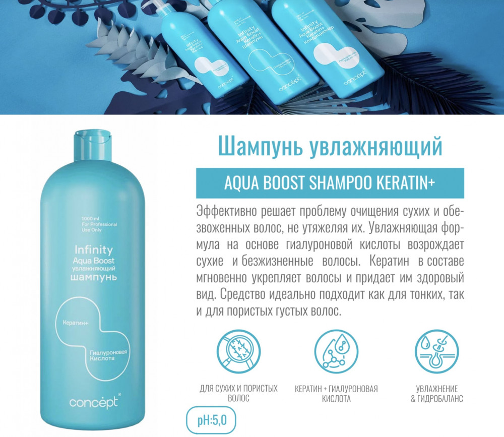 Concept Шампунь для волос увлажняющий «Aqua Boost Shampoo Keratin+»