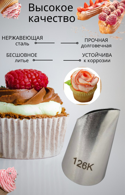 Насадка кондитерская для создания лепестков роз №126КВ данный момент этот товар отсутствует в продаже. Возможно, у нас найдется аналогичный или похожий товар здесь. Насадка для кондитерского мешка Лепесток предназначена для создания цветов и оформления капкейков, корзинок и кексов. Широко применяется в кремовой и зефирной флористике. С помощью насадок Лепесток розы №124К, №125K, №126, №126K можно сделать из крема или зефира розы, маки, анемоны, лютики (ранулкулюсы), гортензии и сосновые шишки. Хризантемы получаются при использовании насадок №79, №80, №81, №401, №402 и №402L. Для небольших роз, бутонов, пионов и тюльпанов подойдут насадки №120, №121, №123. Эти насадки позволяют формировать лепестки разных размеров, благодаря чему цветы выглядят как настоящие. Пользоваться насадками просто: достаточно присоединить к универсальному кондитерскому мешку, наполнить кремом, сливками или зефиром — и можно творить. Насадки изготовлены из пищевой нержавеющей стали, бесшовные, устойчивы к деформации, легко моются. Подходят для многоразовых и одноразовых мешков, а также кондитерских шприцев. Отличный выбор для начинающих и профессиональных кондитеров, зефирных фей и всех, кто любит творчески украшать десерты. |