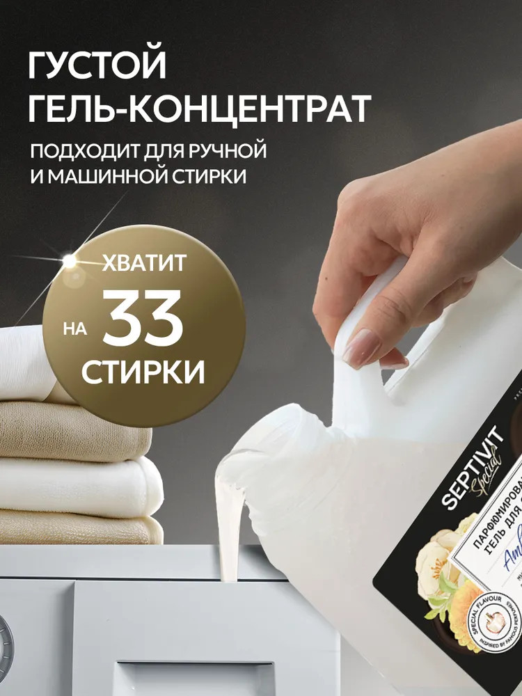 Подарите своей одежде нежность и цветочный аромат с парфюмированным гелем для стирки Septivit Special. Он не только обеспечит безупречную чистоту вещей, но и создаст приятные ощущения от использования. Формула геля разработана специально для эффективного удаления загрязнений и пятен при минимальном расходе средства. Благодаря концентрированной текстуре, достаточно небольшого количества добавления геля, чтобы добиться идеальной чистоты одежды. Гель для стирки идеально подходит для всех типов тканей — натуральных, искусственных, синтетических, а также деликатных материалов и детского белья. Благодаря ультрамягкой формуле, гель бережно удаляет загрязнения даже при низкой температуре стирки, сохраняя структуру волокон.