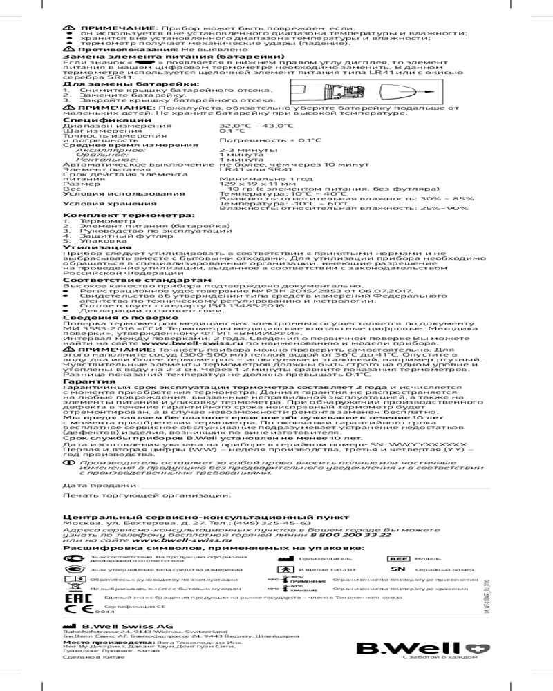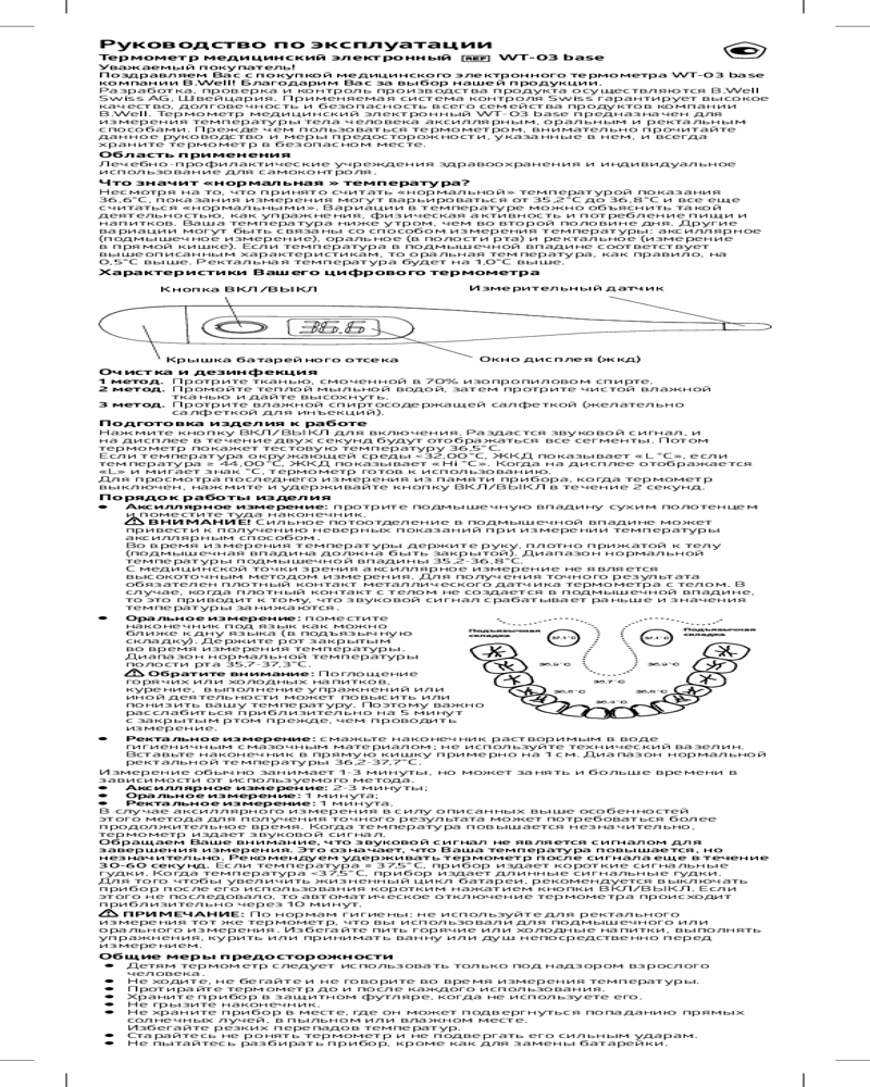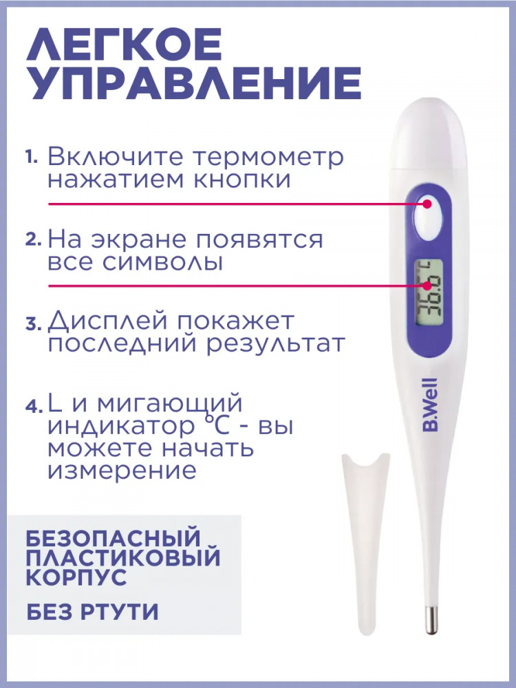 B.Well Термометр медицинский электронный с защитой от влаги WT-03 base+94