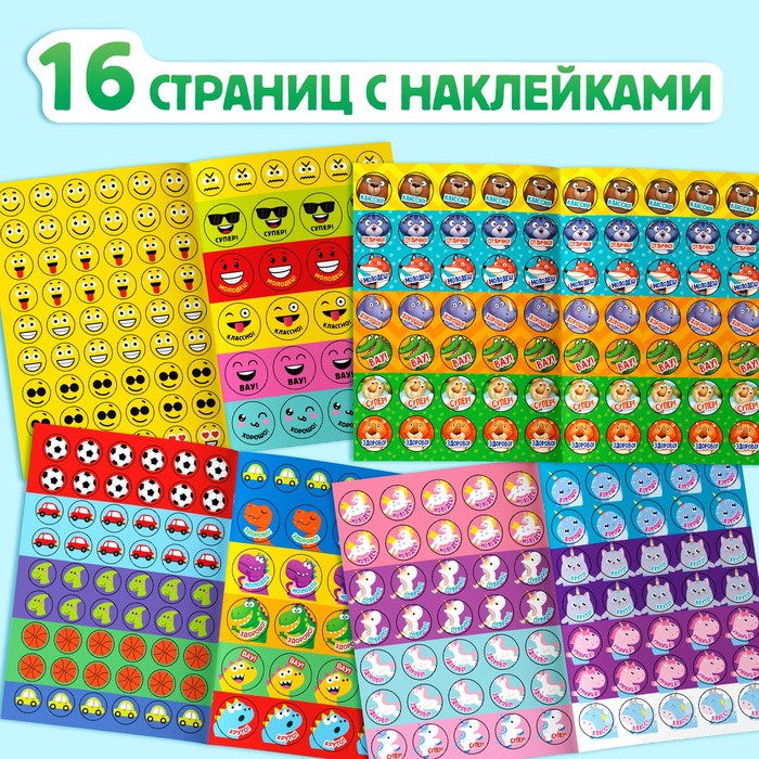 • 600 наклеек разных тематик: животные, драконы, смайлы, спорт;