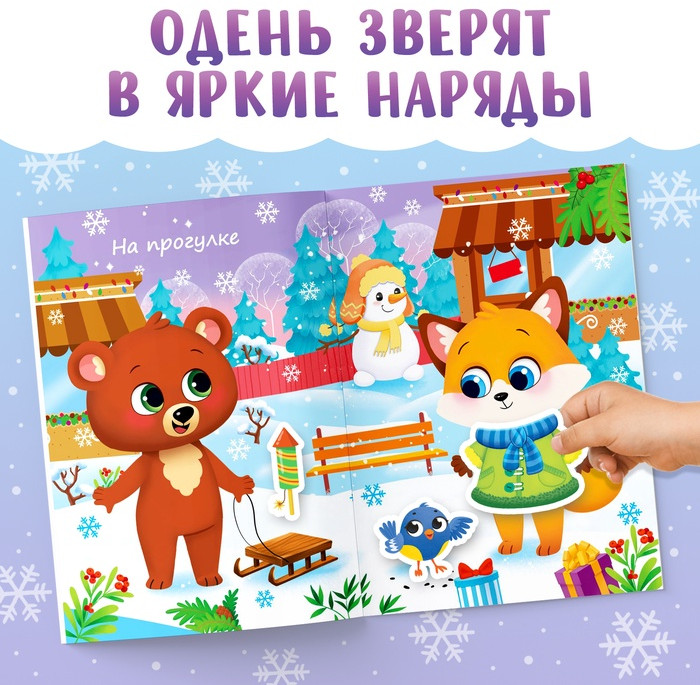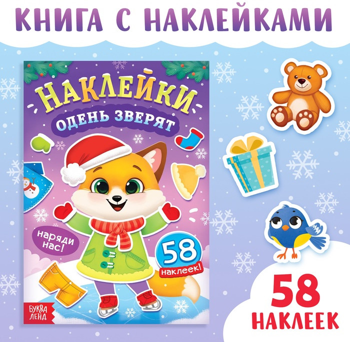 • новогодние зверята, которых нужно одеть с помощью наклеек;