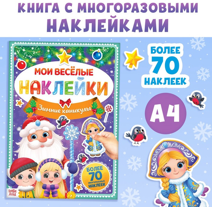 В данный момент этот товар отсутствует в продаже. Возможно, у нас найдется аналогичный или похожий товар здесь. Книга с многоразовыми наклейками «Мои весёлые наклейки. Зимние каникулы» — отличный способ создать праздничное настроение и занять ребёнка увлекательной и полезной игрой. Яркие новогодние сцены и персонажи помогут малышу развивать творческие способности, изучать цвета и формы, а также весело провести время.
