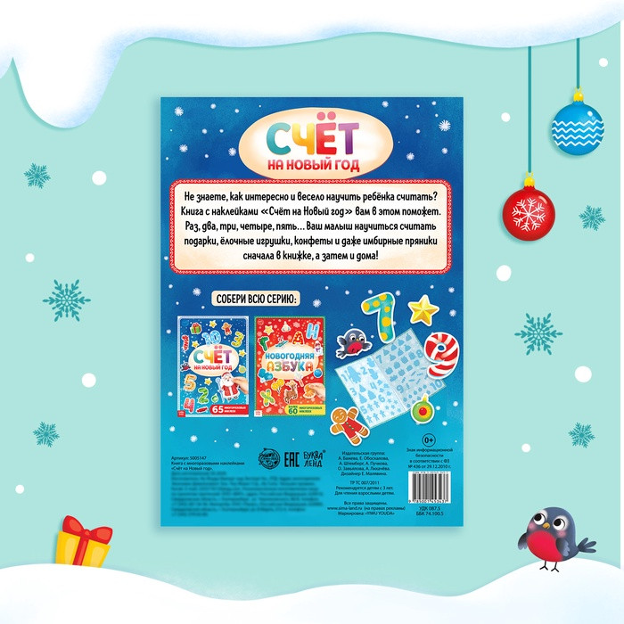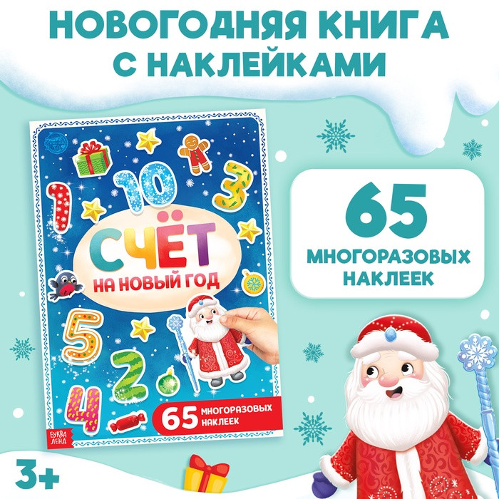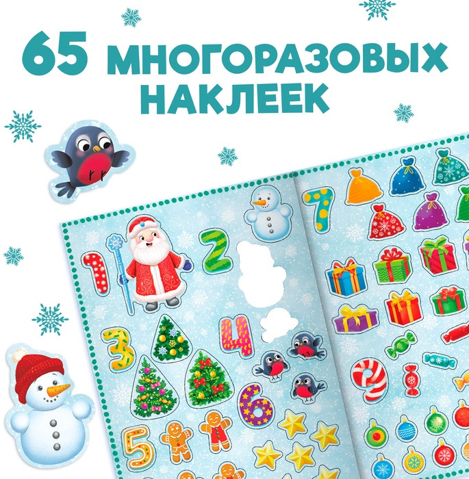 Новогодняя книга с многоразовыми наклейками «Счёт на Новый год»В данный момент этот товар отсутствует в продаже. Возможно, у нас найдется аналогичный или похожий товар здесь. Не знаете, как интересно и весело научить ребёнка считать? Книга с наклейками «Счёт на Новый год» вам в этом поможет. Малыш научится считать подарки, ёлочные игрушки, конфеты и даже имбирные пряники — сначала в книжке, а затем и дома. Наклейки в книге многоразовые, их можно клеить по 3–4 раза. В набор входит 65 многоразовых наклеек. Рекомендовано для детей от 3 лет. |